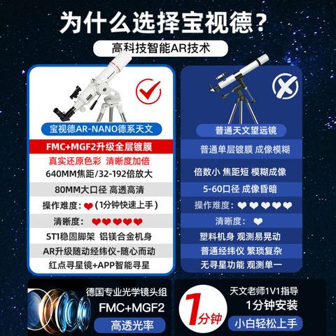 德国宝视德专业天文望远镜,高倍高清,适合中小学生及儿童使用,观星更清晰!拍2件仅需299元,性价比超高,让孩子爱上探索宇宙!