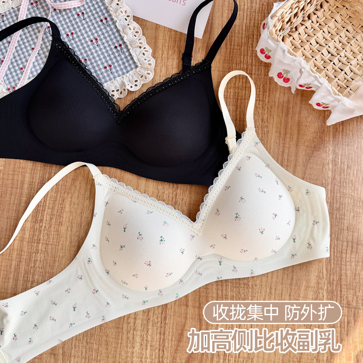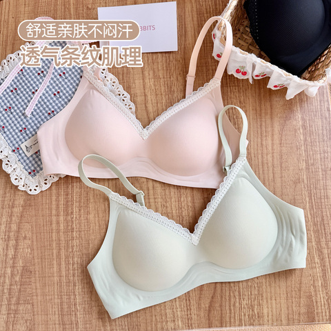 六只兔子无痕内衣女小胸聚拢软支撑胸罩无钢圈收副乳防下垂文胸。