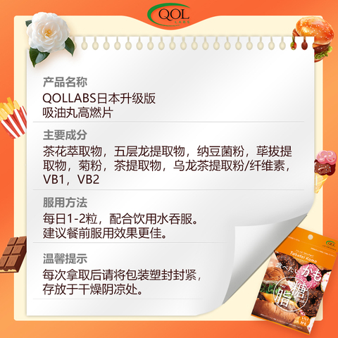 QOLLABS吸油丸大餐救星抗糖控油利尿消水丸升级加强版阻断片